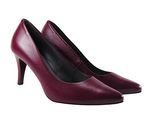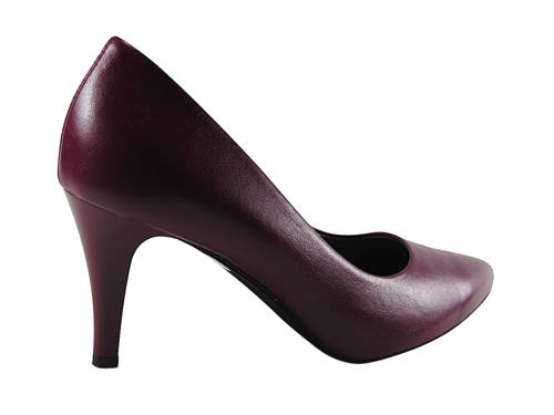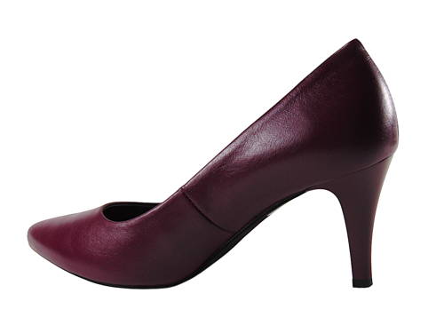 Dámska bordo/fialová elegancia na strednom stabilnom podpätku. Uvedené rozmery sú merané pri veľkosti 37. Každou ďalšou veľkosťou sa proporčne zväčšujú.