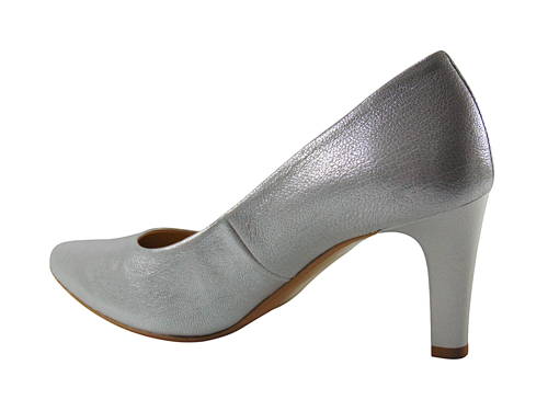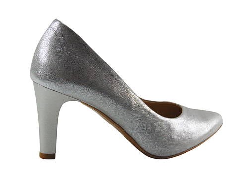 Strieborná elegancia na strednom stabilnom podpätku. Uvedené rozmery sú merané pri veľkosti 37. Každou ďalšou veľkosťou sa proporčne zväčšujú.