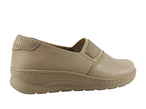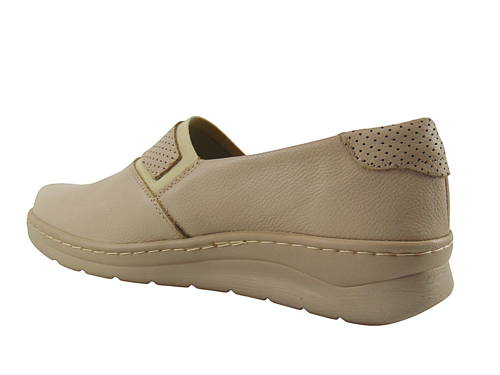 Helios komfort je pohodlná /H+-široká/dámska obuv z prírodných materiálov, ktorá má ergonomický strih a nadčasový vzhľad. Ideálne na každodenné nosenie. Zvršok je vyrobený z mäkkej kože s prírodným vláknom, čo dôležité pre ľudí s haluxmi alebo citlivou pokožkou. Kožená, profilovaná stielka podporuje správnu polohu chodidla a priedušná podšívka zvyšuje pohodlie počas celodenného nosenia. Pohodlný model, ktorý nevyžaduje šnurovanie ani zapínanie – vďaka tomu je obúvanie a vyzúvanie topánok rýchle a pohodlné. Podrážka z ľahkého a pružného polyuretánu (PU) poskytuje vynikajúce tlmenie a stabilitu.