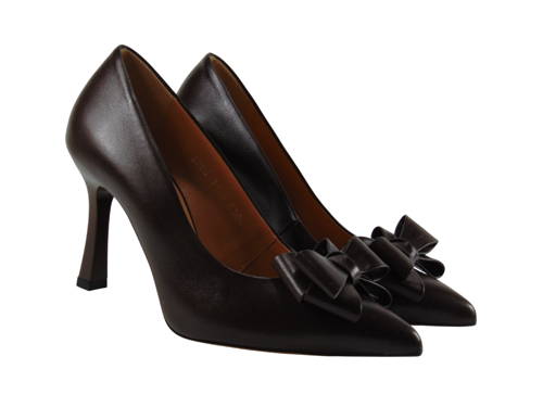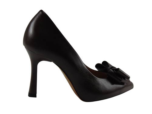 KORDEL-choco/hnedé kožené lodičky s mašľou G