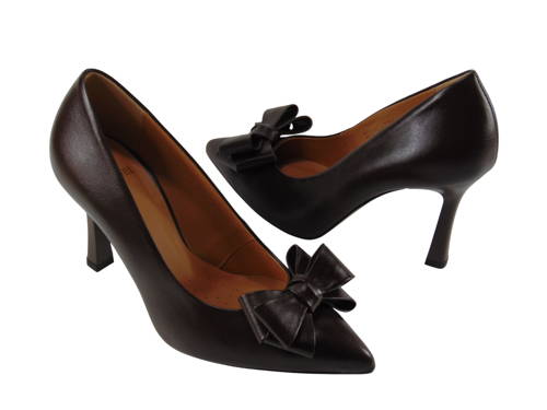Model zaujme hlbokým čokoládovým odtieňom hnedej a dekoratívnou mašľou, ktorá dodáva sofistikovaný, ženský charakter. Štíhly, ženský strih s mierne zúženou špičkou krásne zúžuje chodidlo a jemne hladká koža dodáva lodičkám luxusný charakter. Tento model je ideálny na slávnostné príležitosti, alebo štýlové pracovné outfity. Je to vynikajúca voľba pre ženy, ktoré hľadajú štýlové, pohodlné kožené lodičky, ktoré kombinujú nadčasový dizajn s vysokou kvalitou spracovania. Mäkká vnútorná stielka zaistí komfortný krok. Uvedené rozmery sú merané pri veľkosti 37. Každou ďalšou veľkosťou sa proporčne zväčšujú.