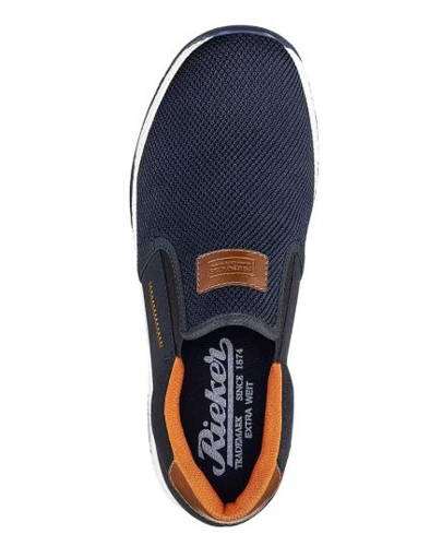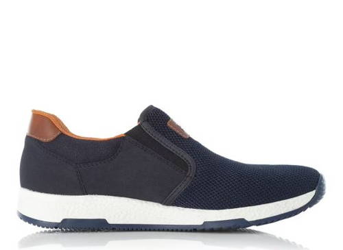 Pánske športové mokasíny značky RIEKER, ktoré sú vzdušné a skvele sa hodia na každodenné nosenie. Zvršok je z hladkého textilného a syntetického materiálu. Pre jednoduché obutie sú mokasíny po stranách vybavené pružnými gumičkami, ktoré sa prispôsobia tvaru nohy a zabezpečia pohodlné nosenie bez zbytočného tlaku. O komfort počas celého dňa sa postará širší strih H, mäkká textilná stielka a podošva vybavená technológiou Antistress, ktorá tlmí nárazy.